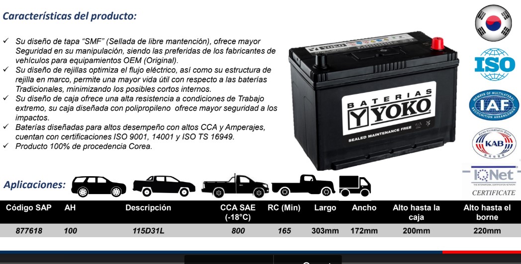 GAMA DE BATERIAS YOKO DE 12V DISPONIBLES.