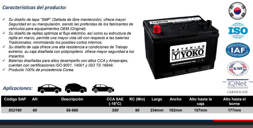 GAMA DE BATERIAS YOKO DE 12V DISPONIBLES.