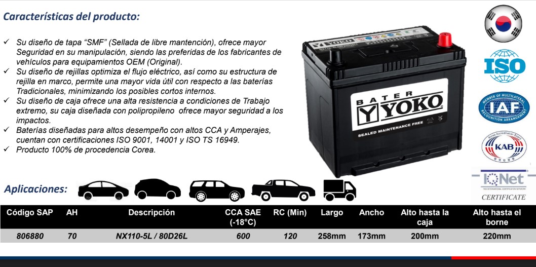 GAMA DE BATERIAS YOKO DE 12V DISPONIBLES.